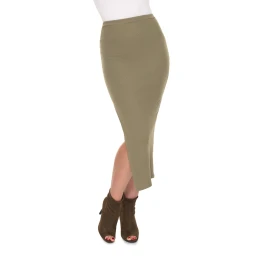 Priliehavá základná sukňa. Ceruzková sukňa nízkeho strihu s rázporkom na boku. Materiál sa prispôsobí postave.