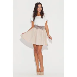 Extrémne očarujúce návrh. Stručne povedané, rozšírený sukňu s opaskom v kontrastnej farbe. Model zdobil predok dievčenské lúk. Mini dĺžka, odhaľujúca lákavé nohy.