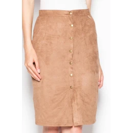 Módna ceruzková sukňa v midi dĺžke zo semišu. Charakteristickým znakom sukne je množstvo ozdobných gombíkov, ktoré sa tiahnu po celej dĺžke sukne.