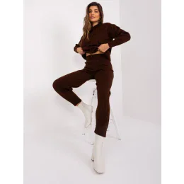 Tmavohnedý dvojdielny dámsky voľnočasový oblek.
