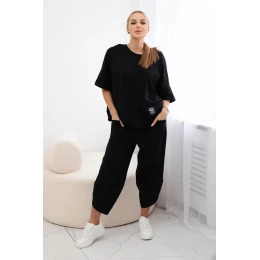 Súprava bavlnená blúzka + nohavice čierna