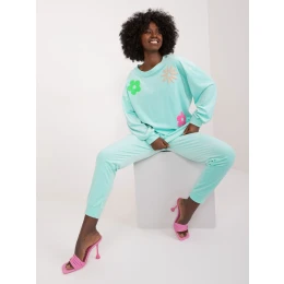 Rozmery súpravy v jednej veľkosti merané na plocho: šírka blúzky v podpazuší - 57 cm, dĺžka blúzky - 57 cm, dĺžka rukávov - 53 cm, šírka pása - 37 cm, dĺžka nohavíc - 95 cm, výška pása - 31 cm