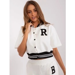 Ecru ležérna súprava s krátkou baseballovou mikinou.