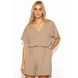 Tento ležérní a nadčasový dámský komplet ušitý z lehké a vzdušné látky změní váš pohled na kombinaci pohodlí a elegance. Halenka s výstřihem do V, zdobená na rukávu minimalistickou plaketou s logem, skvěle doplňuje hladký celek a umožňuje tak ztotožnit model se značkou. Šortky mají praktické boční kapsy a elastický pas, který se přizpůsobí mnoha typům postavy. Volný střih neomezuje v pohybu a mírně vyšší pas opticky prodlužuje nohy. Souprava se dodává ve třech barevných variantách: černé, cappuccino a světle béžové. Dámskou soupravu lze nosit samostatně i kombinovat s dalšími kusy oblečení. Hodí se k různým doplňkům a obuvi, což poskytuje nespočet možností letního stylingu.