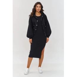 Jeden komplet, mnoho možností! Pruhované šaty bez ramínek a rozepínací mikina jsou sestavou vytvořenou pro ženy, které si cení pohodlí a univerzálnosti. Díky těmto dvěma kusům můžete přizpůsobit svůj outfit každé roční době - v létě nosit pouze šaty a v chladnějších dnech doplnit svůj look teplou mikinou. Pruhované šaty se přizpůsobí postavě, zdůrazní tvary, ale neomezují pohyb a boční rozříznutí dodává ženskosti a smyslnosti. Mikina s kapucí má pohodlné zapínání a hodí se k mnoha outfitům. Navíc je vyrobena z hrubšího materiálu, což ji činí dostatečně univerzální, abyste ji mohli využít jako doplněk k outfitu v každém ročním období. Mikina je navržena v uvolněném, oversized střihu, což zaručuje plnou volnost pohybu. Elastické lemy na rukávech a na spodku přidávají celkově módní design. Noste šaty samostatně v teplejších dnech a užívejte si lehký, ženský look. Když se ochladí, stačí přehodit mikinu s knof