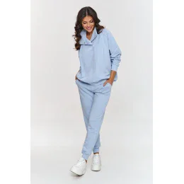 Jednoduchý, a přitom velmi stylový set s mikinou se zapínáním je skvělým návrhem pro milovnice minimalismu a pohodlí. Bez kapuce, ale s maximálním pohodlím, mikina volného střihu s jemnými zapínáním dělá set mimořádně univerzálním a hodí se na mnoho příležitostí. Teplákové kalhoty mají volný střih a pružiny u nohavic, které zajišťují ideální přizpůsobení a pohodlí po celý den. Elastický pás zajišťuje, že kalhoty jsou pohodlné a neomezují pohyb. Volná mikina má klasický střih bez kapuce, což znamená, že se skvěle hodí pod kabát nebo bundu. Navíc má stojánek zdobený stylovým detailem v podobě kovových knoflíků. Díky přírodnímu materiálu je tento set skvělou volbou jak na volný den doma, rychlé nákupy, tak i na setkání s přáteli nebo cyklistické výlety. Můžete ho nosit jako celek nebo kombinovat jednotlivé kusy s jiným oblečením, vytvářejíc mnoho módních sestav. Investujte do pohodlí a nadčasového stylu, teplá
