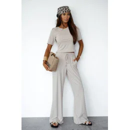 Dámska súprava z viskózy s pridaným elastanom je ideálnou kombináciou štýlu a pohodlia. Súprava obsahuje tričko s krátkymi rukávmi a klasickým okrúhlym výstrihom, ktorý jemne zvýrazňuje postavu a zaručuje pohodlné nosenie. Dlhé nohavice s elastickým pásom a šnúrkou v páse zaručujú dokonalé prispôsobenie a bočné vrecká dodávajú praktickosť. Vďaka ľahkému, priedušnému materiálu s pridaným elastanom je súprava mäkká, pružná a skvelá na každodenné nosenie aj relaxáciu.