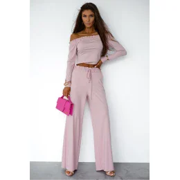 Táto elegantná dámska súprava z viskózy s prídavkom elastanu spája ženskosť a pohodlie. Blúzka s dlhými rukávmi a efektným španielskym výstrihom krásne zvýrazňuje ramená a dodáva stylingu jemne zmyselný charakter. Dlhé nohavice so šnurovacím pásom boli ozdobené jemnými mašličkami, ktoré dodávajú súprave eleganciu a ľahkosť. Praktické vsadené vrecká na bokoch zvyšujú funkčnosť súpravy. Mäkký, elastický materiál zaručuje pohodlie pri nosení a dokonale sa prispôsobí postave. Súprava je vhodná na každodenné nosenie aj na špeciálne príležitosti.
