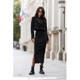 Představujeme kompletní sestavu v černé barvě, která kombinuje eleganci s pohodlím a stává se ideální volbou na mnoho příležitostí. Bez ohledu na to, jestli jdete do práce, na setkání s přáteli nebo na rande, tento set zdůrazní vaši osobnost a styl. Vyrobený z vysoce kvalitních materiálů, zaručuje pohodlí po celý den. Sako v sestavě se vyznačuje pečlivě promyšlenou konstrukcí. Šaty připojené k setu zajišťují dodatečnou všestrannost. Jejich jemný tvar umožňuje snadné sladění s mnoha styly. K výrobě setu bylo využito 95% bavlny a 5% elastanu, což z něj dělá měkký na dotek a elastický. Tento moderní set je skvělým návrhem pro ženy, které si cení jak styl, tak pohodlí. Vyberte si set ELLIE a vynikněte z davu!