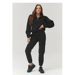 Štýlová dámska tepláková súprava vo veľkosti UNI je ideálnou kombináciou pohodlia a módneho vzhľadu. Je vyrobená z mäkkého, príjemného materiálu a je ideálna na každodenné nosenie, ako aj na víkendový oddych alebo cestovanie. Klasické farby dodávajú súprave univerzálny charakter a ľahko sa kombinujú s rôznymi štylizáciami. Ďalšou výhodou súpravy je ozdobné prešívanie tiahnuce sa po celej dĺžke nohavíc, ktoré opticky predlžuje nohy. Voľná tepláková súprava s krátkym zipsom pod krkom a spodnou časťou s nastaviteľnými šnúrkami zaručuje pohodlie pri nosení a módny, športovo-voľnočasový vzhľad. Teplákové nohavice s elastickým pásom majú úzke nohavice zakončené manžetami, ktoré zvýrazňujú moderný vzhľad.