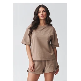 Elegantní dámský set se šortkami je ideální volbou pro ženy, které ocení pohodlí a moderní minimalistický styl. Souprava se skládá z volného trička s volným střihem a pohodlných šortek s elastickým pasem, vytvářející souvislý a nadčasový vzhled. Tento letní dámský set se skvěle hodí na každodenní nošení při procházce, nákupech, dovolené nebo jako pohodlný domácí oděv. Díky univerzálnímu střihu můžete nosit set jako hotový outfit nebo kombinovat jednotlivé kusy, vytvářející různorodé outfity. Tričko s jednoduchým střihem zajišťuje volnost pohybu a pohodlné nošení, zatímco šortky s pohodlným pasem skvěle sedí na postavě. Jedná se o módní dámský casual set, který spojuje funkčnost s aktuálními trendy. Pokud hledáte pohodlné a stylové řešení na teplé dny, tento letní dámský set bude skvělou volbou. Je také skvělou alternativou k klasickému teplákovému setu, lehký, prodyšný a neuvěřitelně pohodlný.