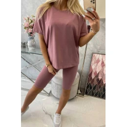Predstavujeme vám súpravu blúzky a nohavíc. Hladká blúzka bez potlače, legíny majú krátke nohavice. Súprava je vyrobená z kvalitného materiálu. Veľkosť je univerzálna a vyhovuje dámam, ktoré nosia veľkosť S, M alebo L.