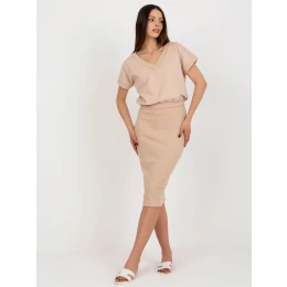 Modelka má na sebe veľkosť S. Rozmery modelky: výška 175 cm, prsia 84 cm, pás 61 cm, boky 91 cm.