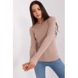 Tento dámský svetr je ideální volbou pro každodenní nošení. Je vyroben z viskózy příjemné na dotek a zaručuje celodenní pohodlí při nošení. Svetr má standardní délku, díky které se hodí k mnoha různým kalhotám nebo sukním. Dlouhý rukáv poskytuje teplo v chladnějších dnech, ideální na podzimní a zimní procházky. Jeho výstřih ve tvaru písmene V dodává šarm a jemný ženský nádech. Je ideální volbou pro mnoho příležitostí, ať už do práce nebo na setkání s přáteli. Materiál svetru je žebrovaný, což mu dodává zajímavou strukturu a působí elegantně. Kromě toho jsou na výstřihu knoflíky s ozdobnými zirkony, které dodávají trochu jiskry a jedinečný nádech. Tento svetr je kombinací pohodlí, stylu a elegance, díky níž budete jistě módní a sebevědomá v každém každodenním kompletu.