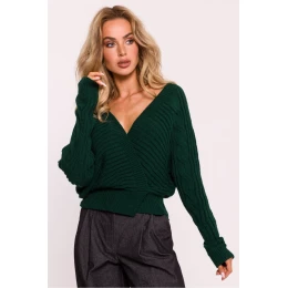 Krátky dámsky sveter z priadze s pruhovanou väzbou, ktorý sa vyznačuje prekrývajúcim sa strihom. Hlboký výstrih vpredu aj vzadu dodáva eleganciu a jemný šarm. Tento štýlový sveter je ideálnou voľbou na každý deň alebo na výnimočné príležitosti. Navrhnutý a ušitý v Poľsku spája vysokú kvalitu spracovania s módnym dizajnom.