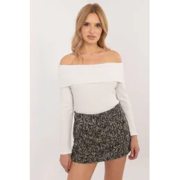 Elegantný dámsky sveter, ktorý je ideálny do práce aj na každý deň. Je vyrobený z kvalitnej zmesi viskózy a elastanu, čo zaručuje pohodlie a skvelý strih. Sveter má pruhovanú, bohatú štruktúru materiálu, ktorá mu dodáva charakter a jemnú eleganciu. Má dlhé rukávy a španielsky výstrih, ktorý účinne zvýrazňuje ramená a dodáva oblečeniu ženskosť. Okrem toho lesklá niť na povrchu materiálu dodáva celku jemný, elegantný lesk. Je to skvelá voľba pre ženy, ktoré oceňujú pohodlie a eleganciu vo svojom každodennom oblečení.