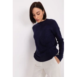 Tento dámsky sveter s výstrihom je skvelou voľbou na každý deň. Klasický okrúhly výstrih a dlhé rukávy zaručujú pohodlie a všestranný štýl. Model má dominantný vzor a rôznorodú štruktúru materiálu, čo mu dodáva jedinečný charakter. Je vyrobený z vysokokvalitnej zmesi viskózy, nylonu a PBT, je mäkký, elastický a príjemný na dotyk. Ideálny na každodenné nosenie, hodí sa k džínsom aj elegantným nohaviciam.