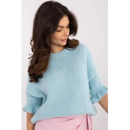 Tento štýlový dámsky sveter s ležérnym charakterom je skvelou voľbou na každý deň aj do práce. Je vyrobený z mäkkej zmesi akrylu, vlny, polyamidu a viskózy, vďaka čomu poskytuje teplo a pohodlie pri nosení. Má klasickú štandardnú dĺžku a elegantný okrúhly výstrih, ktorý jemne zvýrazňuje krk. 3/4 dlhé rukávy zdobia jemné volániky, ktoré celku dodávajú ženský šarm. Vďaka hladkej štruktúre materiálu je sveter univerzálny a ľahko kombinovateľný, ideálny k elegantným nohaviciam aj každodenným džínsom.