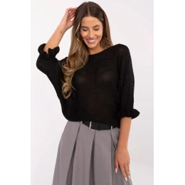Tento elegantný dámsky sveter je skvelou voľbou na každú príležitosť, ideálny na každodenné nosenie aj do práce. Je vyrobený z kvalitnej viskózy s prídavkom metalických vlákien, čo zaručuje pohodlné nosenie a decentný, štýlový lesk. Hladký vzor zdôrazňuje klasický charakter modelu, zatiaľ čo 3/4 rukávy s mašľou dodávajú ženský pôvab. Okrúhly výstrih krásne zvýrazňuje krk, zatiaľ čo motýlik na chrbte je elegantným, efektným akcentom. Sveter štandardnej dĺžky je kombináciou pohodlia a elegancie, ktorá doplní každý outfit.