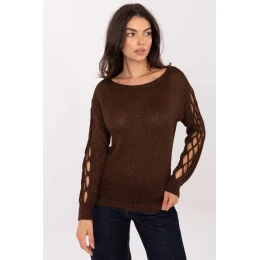 Elegantný dámsky sveter štandardnej dĺžky vyrobený z vysokokvalitnej viskózy s prídavkom metalickej priadze, ktorá sa jemne leskne a dodáva celku výnimočný charakter. Model sa vyznačuje modernými prestrihmi na rukávoch, ktoré dodávajú klasickému tvaru moderný akcent. Vďaka hladkému vzoru je sveter univerzálny a ľahko sa kombinuje s inými kúskami oblečenia. Dlhé rukávy a okrúhly výstrih mu dodávajú nadčasovú eleganciu a zároveň zabezpečujú pohodlné nosenie. Skvele sa hodí na každodenné aj pracovné štylizácie, pričom jednoduchým, ale účinným spôsobom zdôrazňuje ženský šik.