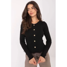 Tento elegantný dámsky sveter štandardnej dĺžky je ideálnou voľbou na každý deň, do práce aj na spoločenské udalosti. Je vyrobený zo zmesi polyesteru, vlny, akrylu a polyamidu, vďaka čomu poskytuje pohodlie pri nosení, mäkkosť a odolnosť. Model má dlhé rukávy a okrúhly výstrih, pričom jeho hladký pruhovaný materiál krásne zvýrazňuje jeho elegantný charakter. Ozdobné gombíky na prednej strane dodávajú jemný pôvab, zatiaľ čo čipkovaný volánový lem v spodnej časti dodáva celému kúsku ženskú ľahkosť a výnimočný štýl. Ide o nadčasový sveter, ktorý sa hodí ku nohaviciam aj sukniam, čím vytvára elegantný styling na rôzne príležitosti.