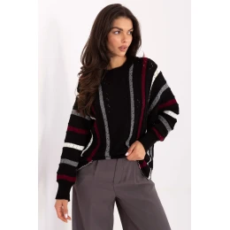 Ľahký dámsky sveter nadrozmernej veľkosti s ležérnym charakterom, ideálny na každodenné príležitosti. Je vyrobený z akrylu a poskytuje hrejivý a príjemný pocit. Model štandardnej dĺžky s klasickým okrúhlym výstrihom a dlhými rukávmi. Priehľadný vzor a pruhy dodávajú svetru ľahkosť a originálny charakter, vďaka čomu sa skvele hodí k džínsom, legínam alebo sukniam. Je to módna a pohodlná voľba na chladnejšie dni.
