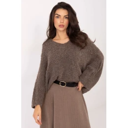 Dámsky bucle sveter je štýlovým a pohodlným návrhom na každodenné oblečenie. Je vyrobený z príjemnej zmesi akrylu, viskózy, vlny a polyamidu, poskytuje pohodlie, teplo a odolnosť. Charakteristická slučková štruktúra materiálu mu dodáva moderný a útulný charakter. Model štandardnej dĺžky s dlhými voľnými rukávmi pôsobí moderne a žensky. Šípový výstrih jemne zvýrazňuje krk a opticky zužuje postavu. Vďaka hladkému vzoru a absencii zapínania je sveter univerzálny a ľahko kombinovateľný, ideálny na každý deň, a to tak k džínsom, ako aj k sukni alebo elegantným nohaviciam.