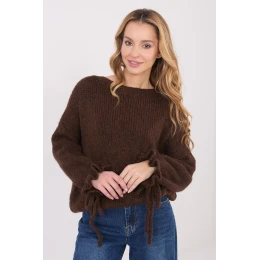 Dámsky sveter s ležérnym charakterom, ideálny na každodenný štýl a do práce. Model so štandardnou dĺžkou, vyrobený z mäkkej a príjemnej zmesi akrylu, polyamidu, viskózy a vlny, ktorá poskytuje pohodlie a teplo. Hladký vzor dodáva svetru univerzálny vzhľad, vďaka čomu ho možno ľahko kombinovať s rôznymi kúskami oblečenia. Klasický okrúhly výstrih a dlhé rukávy zdôrazňujú nadčasový strih. Ozdobné volániky s mašľou na rukávoch dodávajú celku ženský vzhľad a jemnú originalitu. Sveter nemá zapínanie, čo zaručuje pohodlie a voľnosť pri nosení.
