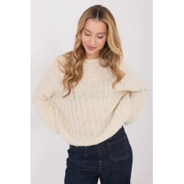 Dámsky sveter s ležérnym charakterom, vyrobený z materiálu s hrubou väzbou, ktorý je ideálny na chladné dni. Model je ideálny na každodenné nosenie a do práce, spája pohodlie s klasickým štýlom. Hladký vzor mu dodáva univerzálny vzhľad a pruhovaná štruktúra materiálu zdôrazňuje jeho módny charakter. Sveter je vyrobený z vysokokvalitnej zmesi polyakrylu, polyamidu, viskózy a vlny, ktorá zaručuje teplo, mäkkosť a pohodlie pri nosení. Štandardná dĺžka, okrúhly výstrih a absencia zapínania vytvárajú nadčasový strih. Dlhé nadýchané rukávy dodávajú celému kúsku ženský šarm a originalitu, vďaka čomu sa sveter stane štýlovým prvkom každodenných outfitov.