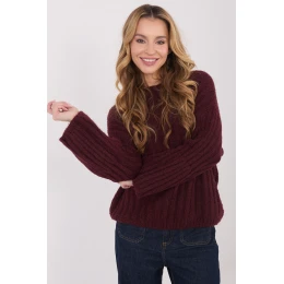 Dámsky sveter s ležérnym charakterom, vyrobený z hrubého pleteného materiálu, ktorý je ideálny na chladnejšie dni. Model je ideálny na každodenné nosenie a do práce, pričom spája pohodlie s klasickým štýlom. Hladký vzor mu dodáva univerzálny vzhľad a pruhovaná štruktúra materiálu zdôrazňuje jeho módny charakter. Sveter je vyrobený z vysokokvalitnej zmesi polyakrylu, polyamidu, viskózy a vlny, ktorá zaručuje teplo, mäkkosť a pohodlie pri nosení. Štandardná dĺžka, okrúhly výstrih a absencia zapínania vytvárajú nadčasový strih. Dlhé nadýchané rukávy dodávajú celému kúsku ženský šarm a originalitu, vďaka čomu sa sveter stáva štýlovým prvkom každodenného stylingu.