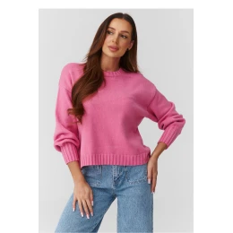 Elegantný a nadčasový dámsky sveter jednej veľkosti, ktorý spája pohodlie s módnym, ležérnym štýlom. Voľný model oversize je ideálny pre rôzne typy postáv a poskytuje pohodlie počas celého dňa. Sveter je vyrobený z mäkkého, na dotyk príjemného úpletu, ktorý jemne obopína telo a osvedčí sa v chladnejších dňoch aj v prechodných obdobiach roka. Klasický okrúhly výstrih a lemy na rukávoch a spodnom okraji dodávajú celému kúsku elegantný, upravený vzhľad. Jemné farby dokonale ladia s aktuálnymi trendmi. Vyrobené v Taliansku.