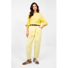 Elegantný dámsky sveter štandardnej dĺžky, ktorý je ideálny na každodenné nosenie aj na výnimočné príležitosti. Je vyrobený z vysokokvalitnej zmesi viskózy, polyesteru a nylonu a poskytuje pohodlie a odolnosť. Hladký vzor mu dodáva nadčasový charakter, zatiaľ čo jemné detaily mu dodávajú ženský šarm. Model má okrúhly výstrih a 3/4 rukávy ukončené jemným volánom, čo podčiarkuje eleganciu a jednoduchosť strihu. Skvelá voľba pre ženy, ktoré oceňujú klasiku v modernom prevedení.
