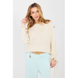 Dámsky sveter s ležérnym charakterom, ideálny na každodennú štylizáciu a do práce. Model so štandardnou dĺžkou, vyrobený z mäkkej a príjemnej zmesi akrylu, polyamidu, viskózy a vlny, ktorá poskytuje pohodlie a teplo. Hladký vzor dodáva svetru univerzálny vzhľad, vďaka čomu ho možno ľahko kombinovať s rôznymi kúskami oblečenia. Klasický okrúhly výstrih a dlhé rukávy zdôrazňujú nadčasový strih. Ozdobné volány so šnurovaním na rukávoch dodávajú celku ženský šarm a jemnú originalitu. Sveter nemá zapínanie, čo zaručuje pohodlie a voľnosť pohybu.