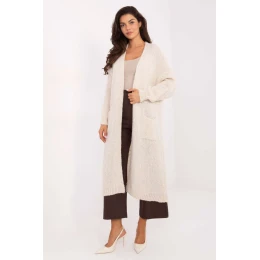 Dlhý dámsky kardigán v ležérnom štýle, ideálny na každý deň a do práce. Je vyrobený z mäkkej a príjemnej zmesi polyakrylu, polyamidu, vlny a viskózy a poskytuje pohodlie počas celého dňa. Neopozeraný model s dĺžkou po kolená, dlhými rukávmi a praktickými vreckami spája eleganciu s funkčnosťou. Hladká štruktúra materiálu uľahčuje kombinovanie kardigánu s rôznymi štýlmi a vytvára pohodlné a štýlové oblečenie.