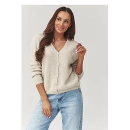 Štýlový a ženský dámsky sveter na gombíky, ktorý v sebe spája pohodlie a nadčasovú eleganciu. Model je vyrobený z mäkkej a príjemnej pleteniny, ktorá zaručuje pohodlie počas celého dňa. Jemný výstrih do V mierne zvýrazňuje siluetu a opticky predlžuje krk. Voľný strih v univerzálnej veľkosti sa dokonale prispôsobí rôznym typom postavy, ponúka voľnosť pohybu a módny, mierne oversized efekt. Sveter sa výborne nosí samostatne alebo ako ľahký náhrdelník k topu či šatám. Model je k dispozícii vo viacerých farebných variantoch, čo umožňuje jednoduché zladenie s individuálnym štýlom a aktuálnymi trendmi. Ideálny na ležérny, kancelársky a každodenný styling. Vyrobený v Taliansku.