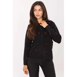 Pôvabný dámsky sveter s ležérnym charakterom, ideálny na každodennú štylizáciu. Je vyrobený z príjemnej zmesi polyesteru, akrylu a vlny a pri nosení poskytuje teplo a pohodlie. Model má štandardnú dĺžku, dlhé rukávy a okrúhly výstrih, jeho prednú časť a rukávy zdobia vyšívané srdiečka, ktoré celku dodávajú dievčenský šarm. Zapínanie na gombíky zdôrazňuje klasický strih a vďaka nemu sa sveter skvele hodí k džínsom aj sukni.