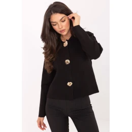 Tento elegantný dámsky sveter je vyrobený z mäkkej zmesi viskózy a nylonu, ktorá zaručuje pohodlie pri nosení. Model má štandardnú dĺžku a dlhé rukávy, golier dodáva celku klasický charakter. Sveter je na prednej strane zdobený ozdobnými prvkami v podobe brošní a zapínanie na suchý zips umožňuje pohodlné a rýchle prispôsobenie. Udržiavaný v hladkom, dominantnom vzore sa hodí na elegantné, návštevné, pracovné stylingy aj každodenné kombinácie a dodá šarm každému outfitu.