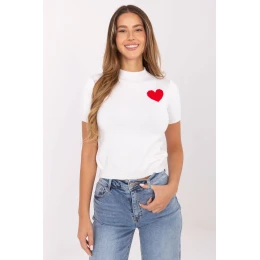 Tento elegantný a pohodlný dámsky sveter je ideálny na každý deň. Je vyrobený z príjemnej zmesi viskózy, polyamidu a PBT, poskytuje pohodlie a skvele sedí na postave. Model so štandardnou dĺžkou a krátkymi rukávmi je ideálny na každodenné nosenie aj na ženské štýly. Okrúhly výstrih jemne zvýrazňuje krk a potlač v tvare srdca na hrudi dodáva celku šarm a dievčenský pôvab. Skvelá voľba pre ženy, ktoré ocenia módny a zároveň pohodlný štýl na každý deň.