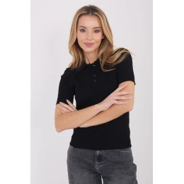 Elegantný dámsky sveter s ležérnym charakterom, ideálny na každodenné outfity a do práce. Model sa vyznačuje pestrou štruktúrou materiálu, ktorá celku dodáva elegantný a zároveň moderný vzhľad. Sveter je vyrobený z kombinácie viskózy a nylonu, vďaka čomu je mäkký, príjemný na dotyk a odolný. Vďaka štandardnej dĺžke je strih univerzálny a ľahko sa kombinuje s nohavicami aj sukňami. Krátke rukávy dodávajú svetru ľahkosť a vďaka nim sa skvele hodí na teplejšie dni alebo ako prvok na vrstvenie outfitu. Ďalšou výhodou je golier a zapínanie na polo gombíky, ktoré svetru dodávajú klasický, mierne športový charakter. Skvelá voľba pre ženy, ktoré ocenia pohodlie, funkčnosť a nadčasový štýl na každý deň.