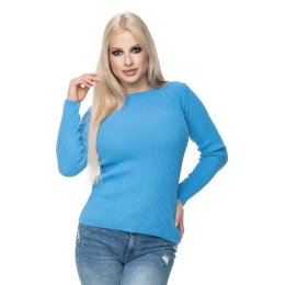 Krátky rebrovaný sveter s lodičkovým výstrihom. Klasický strih svetra z mäkkej priadze.