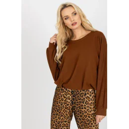 Dámsky sveter s dlhými rukávmi a lodičkovým výstrihom. Na chrbte rozrezaná ozdobná väzba.