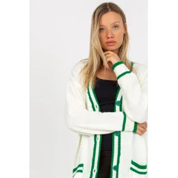 Sveter s dlhými rukávmi, zapínanie na gombíky, bočné vrecká, svetrík s kontrastnými lemami.