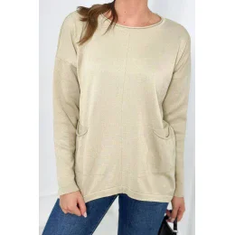 Sveter s prednými vreckami je nielen hrejivý a praktický kúsok oblečenia, ale aj štýlový doplnok, ktorý dodá charakter každému outfitu. Tento sveter vyrobený z mäkkého materiálu zaručuje pohodlie pri nosení a zároveň vyzerá módne a moderne. Na prednej strane svetra sú praktické vrecká, ktoré mu dodávajú nielen trochu nonšalancie, ale sú tiež funkčné na každodenné použitie. Umožňujú schovať ruky v chladnejších dňoch alebo uložiť drobnosti. Sveter je perfektný ako prvok ležérneho štýlu, ideálny na nosenie k džínsom alebo nohaviciam v chladnejších dňoch. Vďaka univerzálnemu dizajnu sa ľahko hodí k rôznym sadám a vytvára ležérny aj elegantnejší vzhľad. Tento sveter s predným vreckom, ktorý je k dispozícii v rôznych farbách a štýloch, je nevyhnutnou súčasťou vášho jesenného a zimného šatníka a kombinuje funkčnosť s módnym vzhľadom. Veľkosť je univerzálna a bude vhodná pre ženy veľkosti S, M, L.
