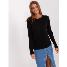 Klasický čierny sveter s okrúhlym výstrihom.