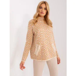 Vzorovaný sveter s polovičným rolákom v ťavej a béžovej farbe.