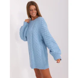 Svetlomodré pletené šaty s kockami.