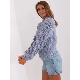 Špinavomodrý nadrozmerný sveter s buffovými rukávmi.