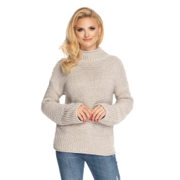 Sveter s voľnými rukávmi a výstrihom so stojáčikom. Sveter je elegantne ukončený.