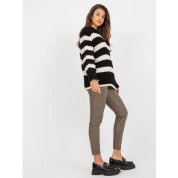Pletený oversize sveter v čiernej a ecru farbe s károvaným vzorom.