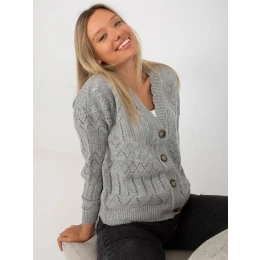 Šedý letný sveter s ažurovým vzorom a zapínaním na gombíky značky RUE PARIS .